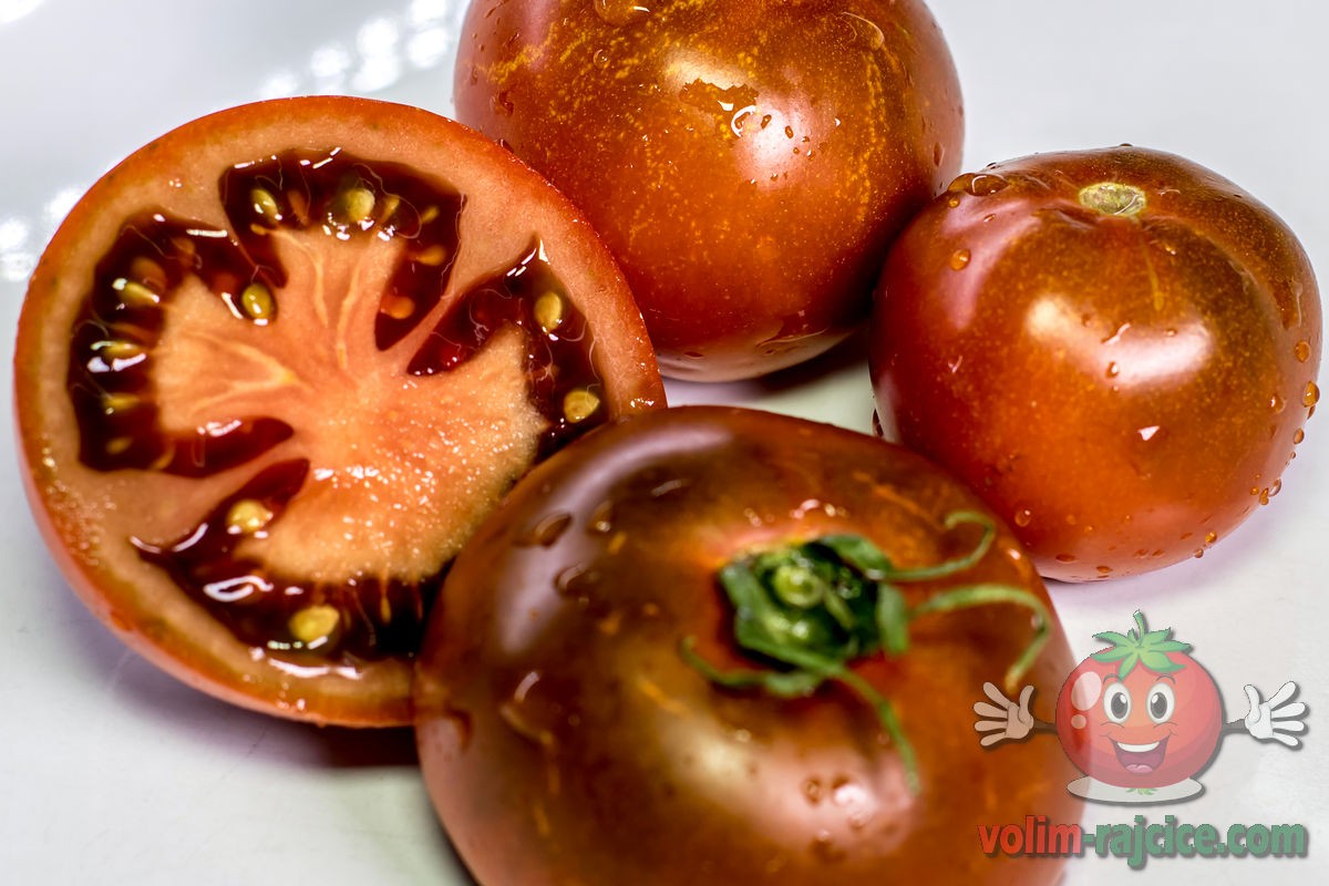 Brown Sugar je prekrasna sočna tamna rajčica gotovo savršeno okruglih plodova veličine između golf i teniske loptice. Otkriće u godini 2017. kad sam ju prvi put uzgajao. Iznimno sočna, prekrasne svilenkaste teksture i jesam li rekao - sočnosti, sočnosti, sočnosti?! :)