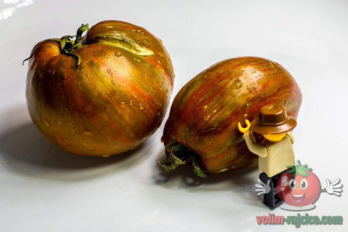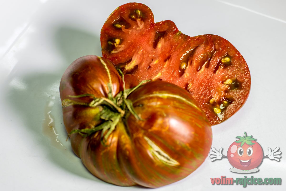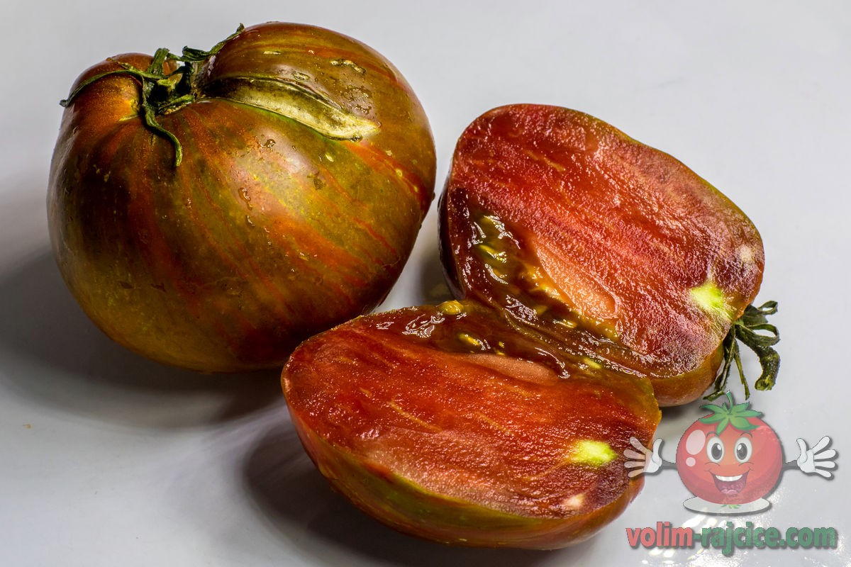 Uz prekrasan izgled - metalik zelene prugice na tamno ljubičastoj rajčici, krasi ju i vrlo ugodan slatko-kiseli okus i iznimna trajnost i stabilnost okusa. Nakon 10 dana u hladnjaku je imala okus identičan kao da je istog dana ubrana. Jedna od najukusnijih srcolikih rajčica uopće.