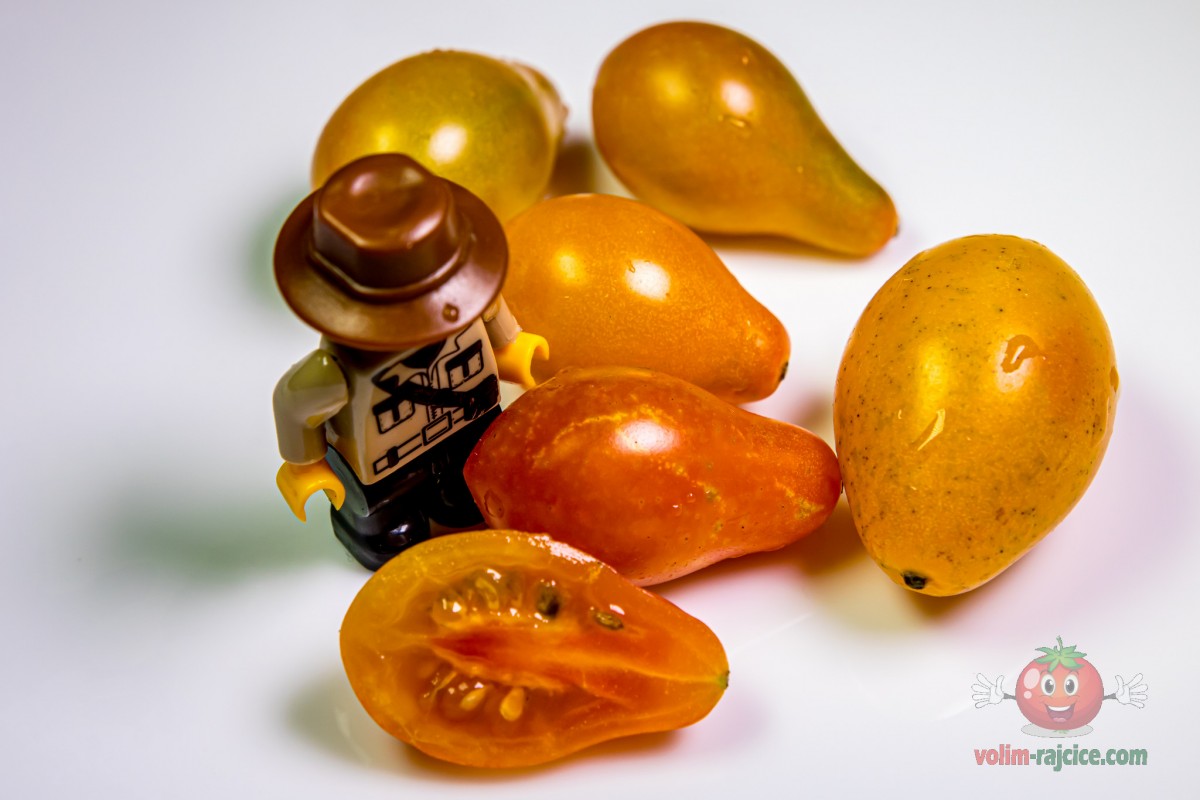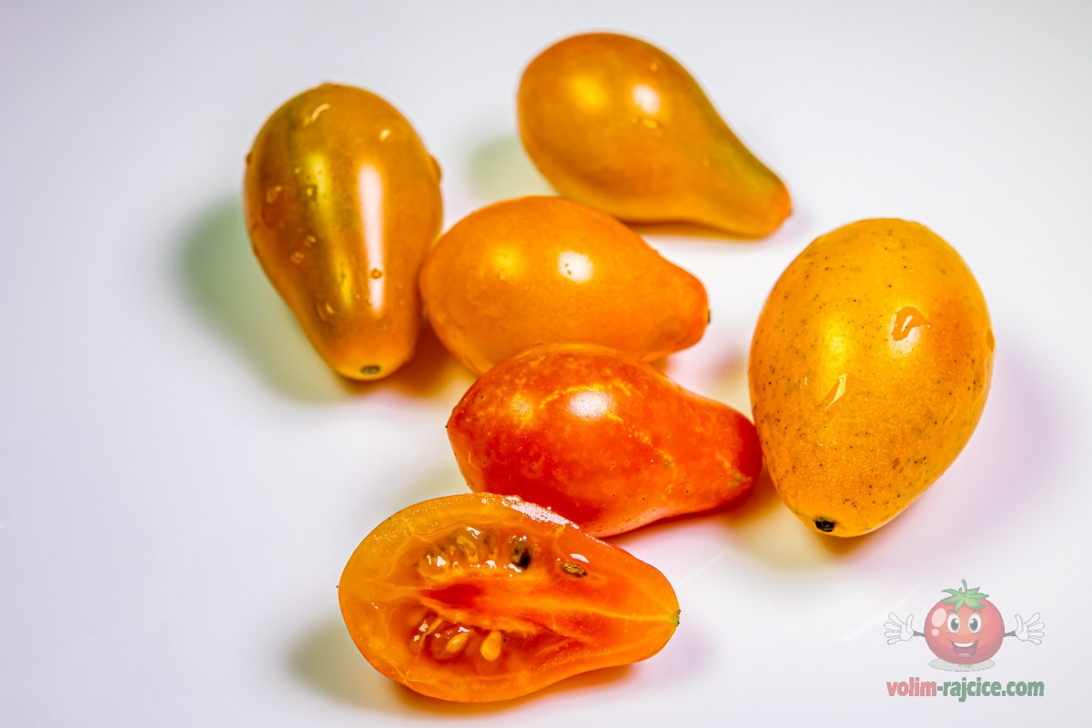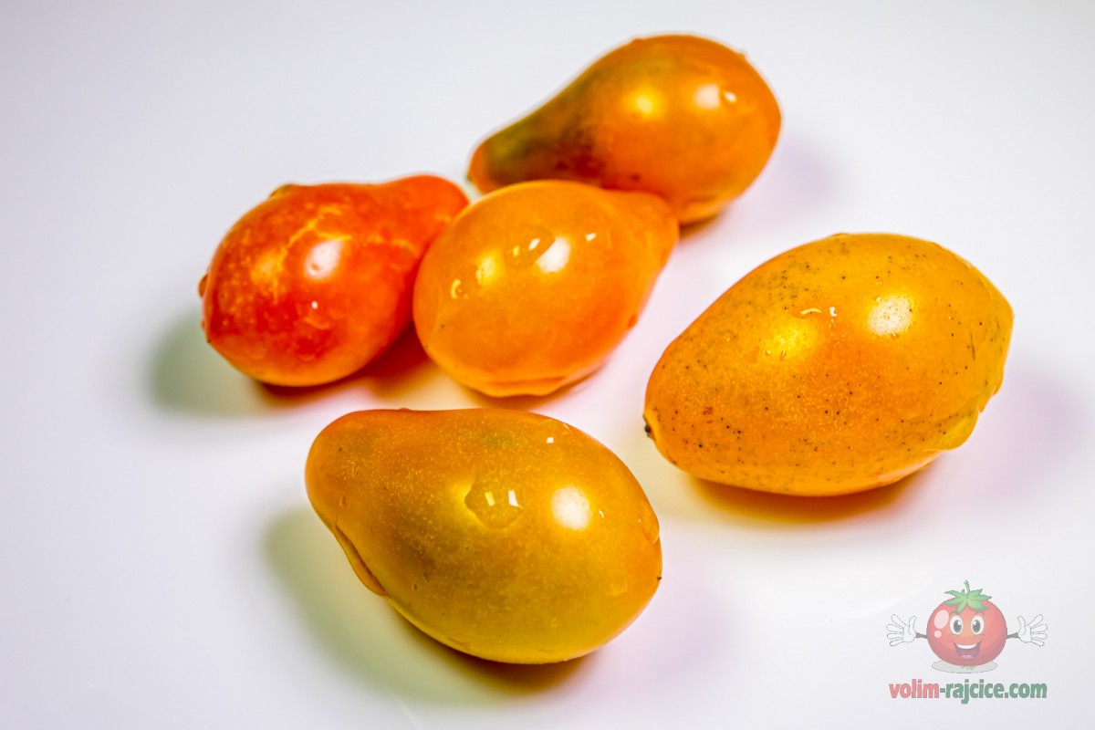 Submarine Blush je prekrasna narančasta kruškica s crvenim mramorenjem, jedna od iznimno rijetkih takvih u svijetu rajčica.